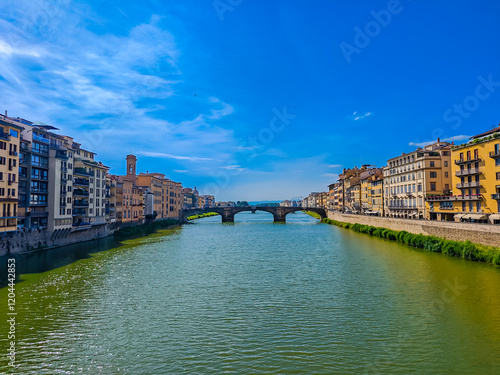 Obraz premium Ponte Santa Trinita, Holy Trinity Bridge bridge over River Arno in Florence,...