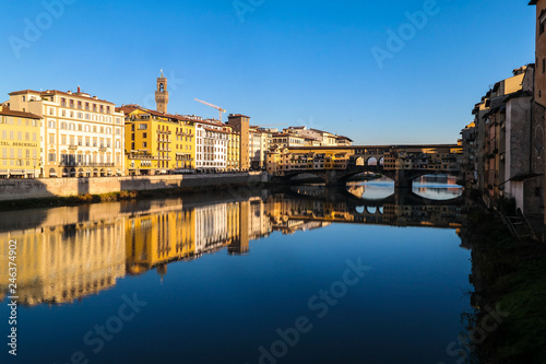 © Dongsoon, Obraz premium 이탈리아 여행, 피렌체, 산타 트리니타다리(Ponte Santa Trinita)에서 바라본 베키오다리(베키오다리(Ponte Vecchio)와 에서 담아 본 그라지에다리(Ponte alle Grazie)와 베키오궁전(Palazzo Vecchio) 풍경