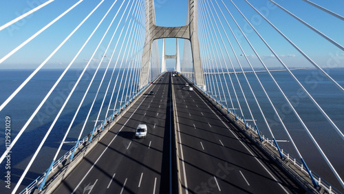 © Comprimido, Obraz premium ponte vasco da gama, lisboa, portugal, imagens aéreas