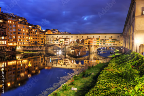 © Photocreo Bednarek, Obraz premium Ponte Vecchio bridge in Florence, Italy. Arno River at night