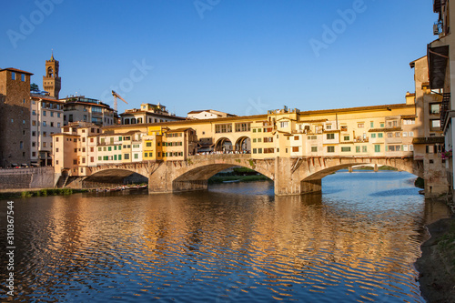 Obraz premium Ponte Vecchio Bridge with Reflection at Sunset in Florence