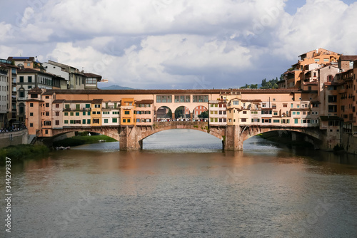 Obraz premium Ponte vecchio in Florence in mid summer with beautiful clouds in the sky