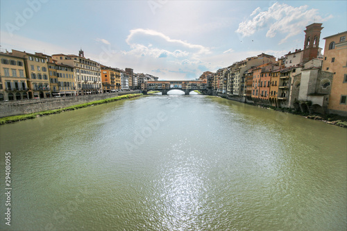Obraz premium Ponte Vecchio in Florence, Italy. Ancient Bridge over the Arno River in one...
