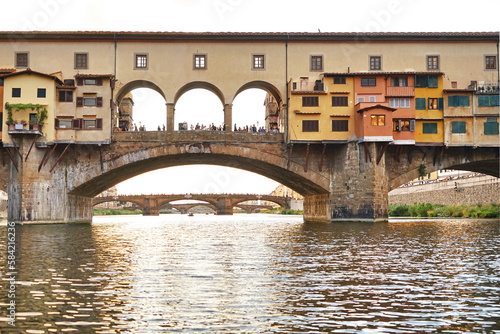 © sansa55, Obraz premium Ponte Vecchio seen from a boat on the Arno River in Florence, Tuscany, Italy