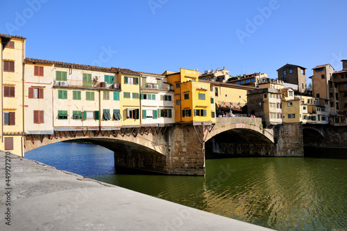 © Мария Аввакумова, Obraz premium Ponte Vecchio. View from the river Arno bank. Florence, Italy.