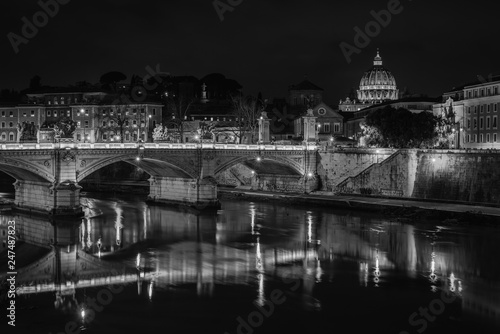 Fototapeta premium Ponte Vittorio Emanuele II and St. Peter's Basilica at night, in Rome, Italy