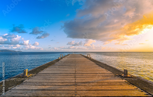 © ODIN Daniel, Naklejka premium Ponton de la plage du Schoelcher au coucher du soleil, en Martinique, Antilles Françaises.