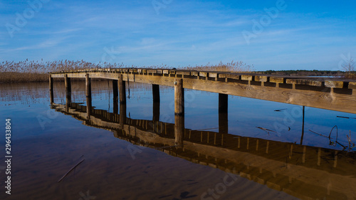 © Anthony, Obraz premium Ponton en bois, au lac d'Aureilhan, à côté de Mimizan