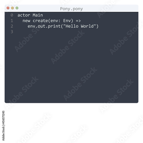 © vector_master, Fototapeta premium Pony language Hello World program sample in editor window