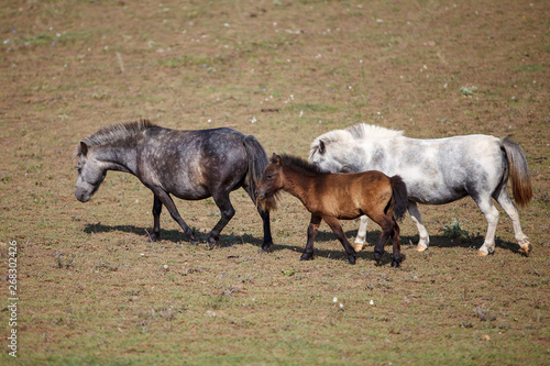© ksubogdanova, Fototapeta premium pony with foal in the pasture