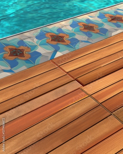 © AzeQo, Obraz premium Pool deck with decorative tile border tile pattern