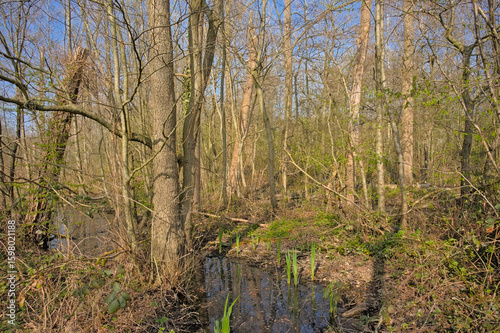 © Kristof Lauwers, Fototapeta premium Pool in a sunny spring forest in Molsbroek nature reserve, Lokeren, Belgium