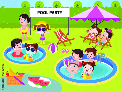 © Creativa Images, Obraz premium Pool party vector concept for banner, website, illustration, landing page, flyer, etc.