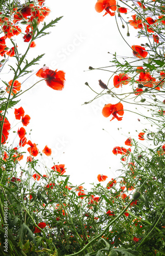 Fototapeta premium Poopies flowers frame on white background