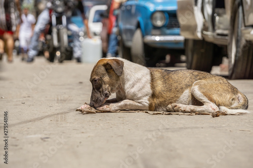 Obraz premium Poor, unwanted, homeless dog in the Streets of Old Havana City, Capital of...