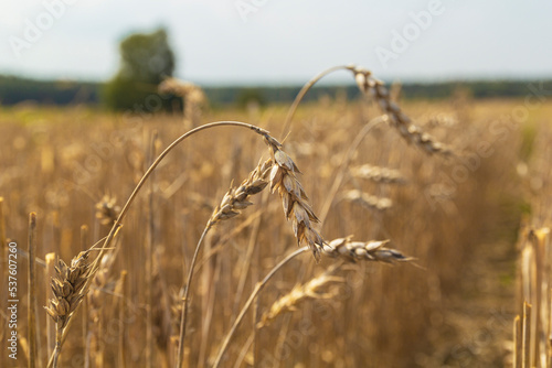 Obraz premium Poor wheat harvest. Dried wheat fields.Wheat bad harvest