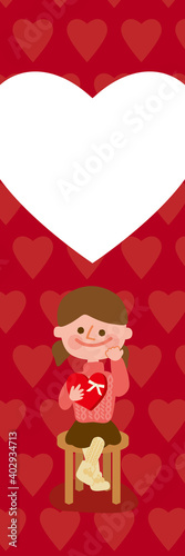 Fototapeta premium バレンタイン チョコレートを持って悩む女の子 ハート柄縦長POPフレーム