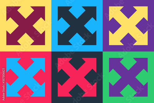 Obraz premium Pop art Arrows in four directions icon isolated on color background. Vector.