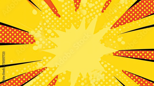 © Ilmi, Fototapeta premium Pop art background. Yellow comic sunburst with speech bubble. banner superhero backdrop