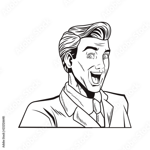 © Jemastock, Obraz premium pop art businessman cartoon in black and white