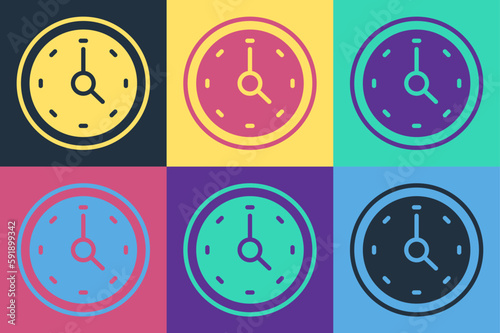 Fototapeta premium Pop art Clock icon isolated on color background. Time symbol. Vector