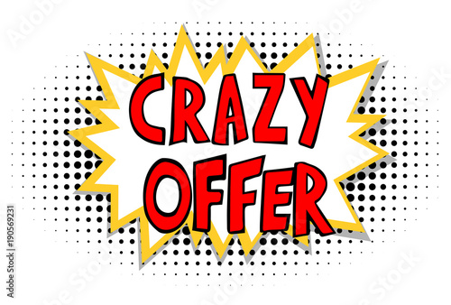 Fototapeta premium Pop art comics balloon with hand drawn lettering - Crazy Offer text, suitable for advertising