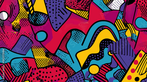 © Furkan, Fototapeta premium Pop art concept multicolored abstract pattern featuring meaningless and complex shape. Colorful background in pop art retro comic style.