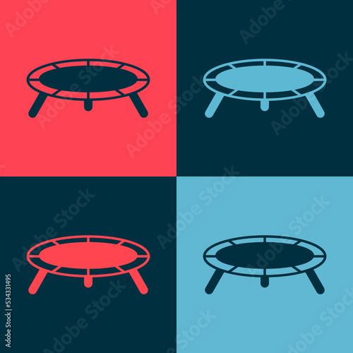 Fototapeta premium Pop art Jumping trampoline icon isolated on color background. Vector