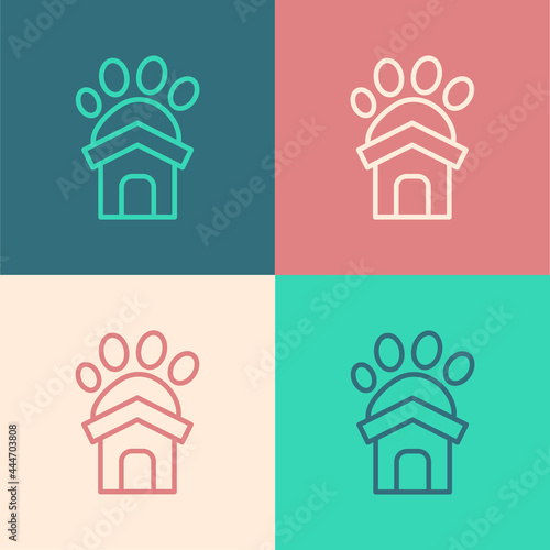 Fototapeta premium Pop art line Animal shelter house icon isolated on color background. Vector