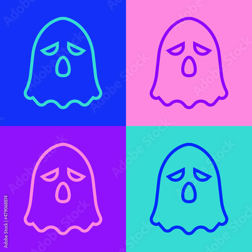 Obraz premium Pop art line Ghost icon isolated on color background. Happy Halloween party. Vector