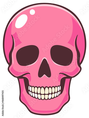 Fototapeta premium Pop Art Pink Skull with Teeth Isolated Graphic Illustration on White