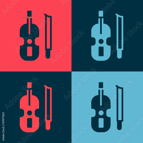 Naklejka premium Pop art Violin icon isolated on color background. Musical instrument. Vector.