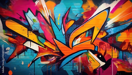 © netsay, Naklejka premium Pop ArtInspired Graffiti Wall Abstract Backdrop Vibrant Urban Canvas Blending Colorful Geometric Patterns, Intricate Spray Paint Textures, and a Striking Pop Culture Atmosphere.