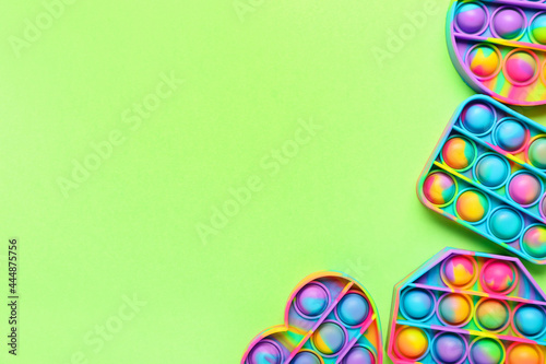 Fototapeta premium Pop it fidget toys on color background