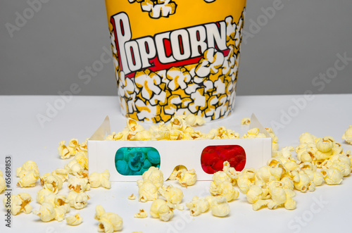 © sharpshutter22, Naklejka premium Popcorn and 3d glasses