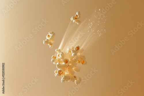 Obraz premium Popcorn Kernels Exploding In Air Against Beige Background