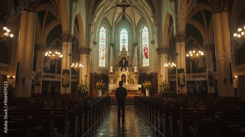 © sorin, Fototapeta premium Pope praying in a cathedral chapel a moment of reflection in the catholic church