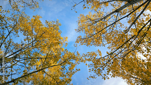 Obraz premium poplar trees with golden autumn leaves in sunlight