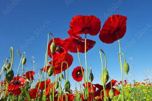 © nupsik284, Naklejka premium Poppies against blue sky.