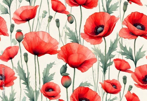 © vector_master, Fototapeta premium Poppies background. Pastel style. AI generated illustration