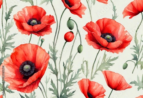 © vector_master, Fototapeta premium Poppies background. Pastel style. AI generated illustration