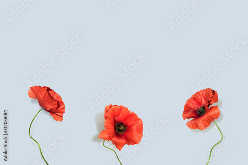 © just_hope, Obraz premium Poppies on blue. Flower composition
