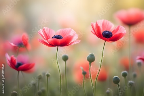 © Toseef, Fototapeta premium Poppy anemone flower bokeh background, AI Generated