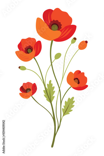 © Metavector , Fototapeta premium Poppy Branch with Beautiful Flowers on a Clean White Background for Elegant and Artistic Design