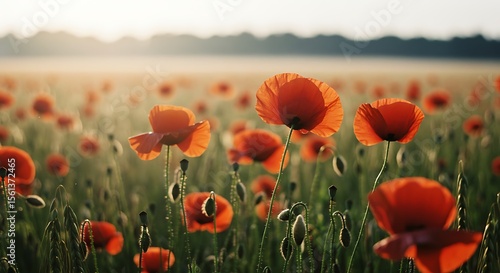 Obraz premium Poppy Field at Sunrise