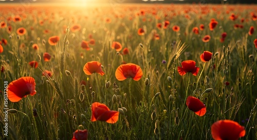 © zerostudio.id, Fototapeta premium Poppy Field at Sunset