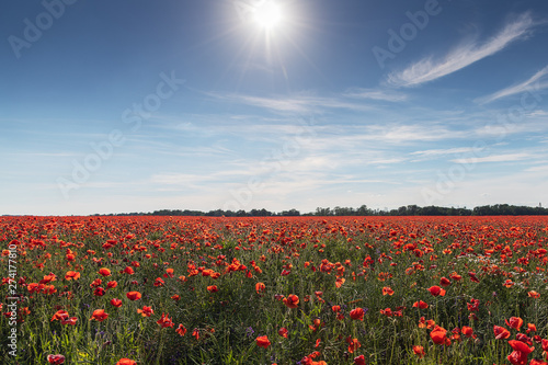 Fototapeta premium Poppy field in summer afternoon.