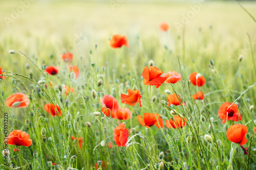 Fototapeta premium poppy field in summer sunlight
