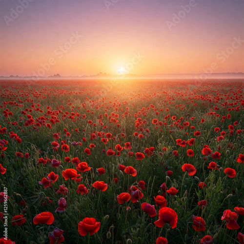 Fototapeta premium poppy field in sunset