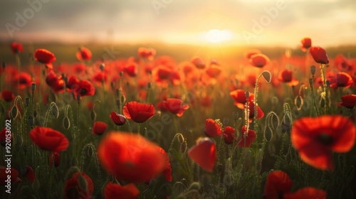 Obraz premium Poppy Field Sunset